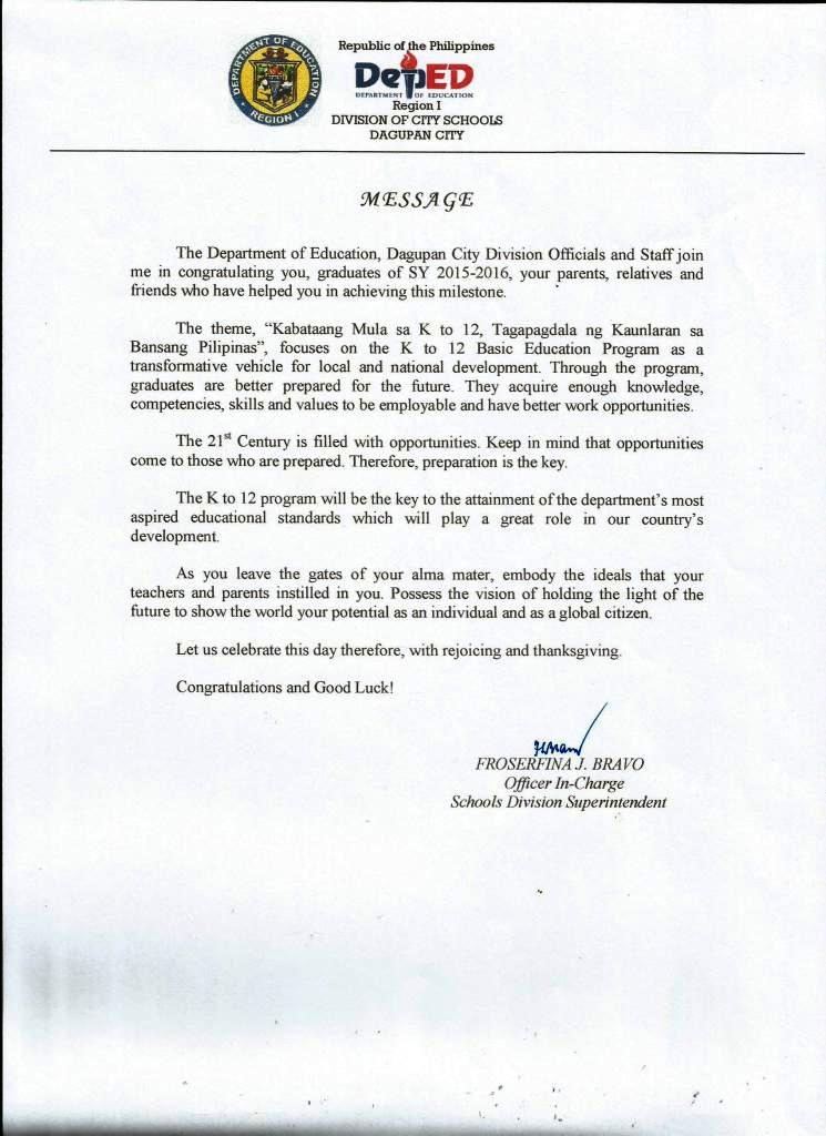 2016 Graduation Message